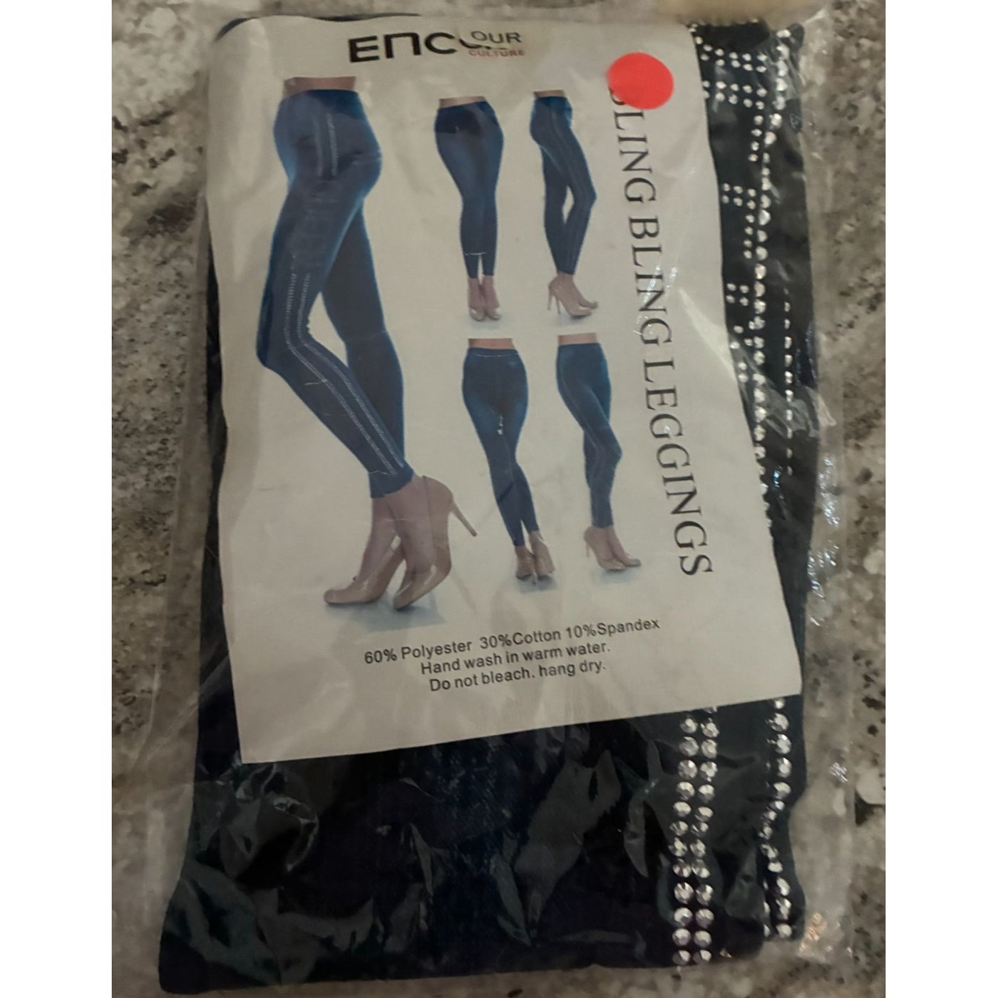 Elegant Bling Bling QUEEN Leggings High Waist Stretch Skinny Pants - O/S / DENIM BLUE